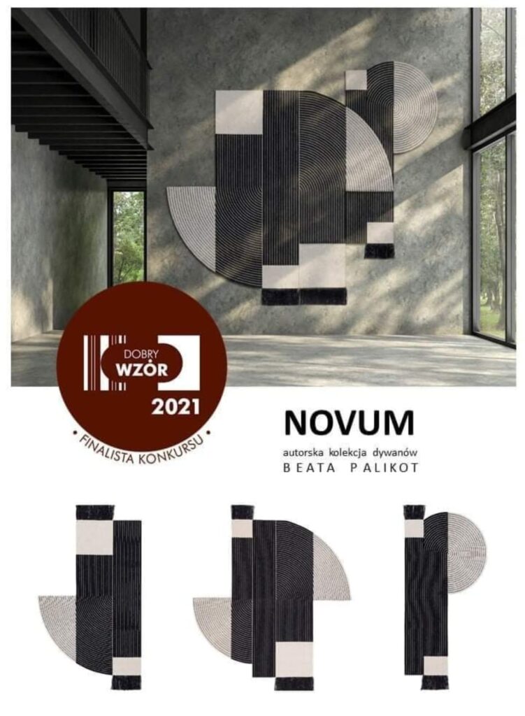 Pracując od lat w przemyśle staram się spajać artyzm z produkcją masową, spontaniczną twórczość z precyzją przemysłowej produkcji. Pracując przy tym projekcie szczególną uwagę zwracałam na: czystość graficzną bieli i czerni; zastosowanie podstawowych form geometrycznych – prostokąta i koła oraz na grę światła na wielowarstwowej strukturze runa ciętego i pętelki. Powrót do tego co pierwotne, rdzenne staje się kanałem nowych form, narracji i znaczeń. Kolekcję NOVUM można czytać na wiele sposobów, za każdym razem inaczej, ponieważ nakładamy na nie siatki własnych spostrzeżeń, a przecież każdy z nas jest inny.