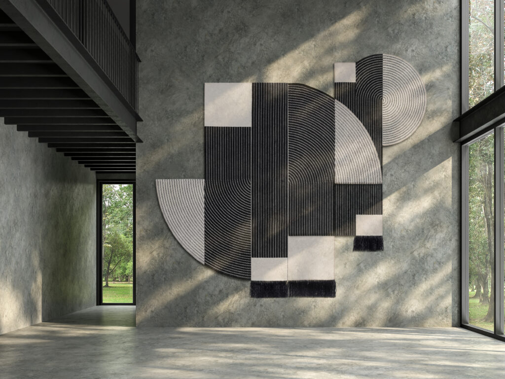 … uwagę mą przykuwa prototypowa kolekcja NOVUM. Dywany strukturalne, wykonane na krośnie przemysłowym z wykorzystaniem poprodukcyjnych końcówek przędz. Trzy dywany, właściwie obiekty. Utrzymane w spójnej kolorystyce i układzie formalnym. Różne w kompozycji i skali. Funkcjonujące indywidualnie, a zarazem możliwe do połączenia w różnych konfiguracjach. To koncepcja nie tylko na wskroś współczesna, intrygująca i autorska. To poszukiwanie odpowiedzi na wiele pytań o rolę sztuki i designu, które stawiamy sobie wobec wyzwań współczesności.